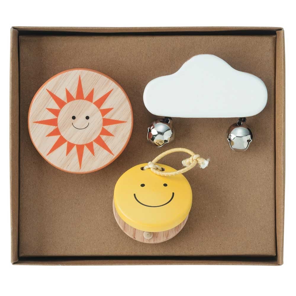 太陽のシェーカーと雲の鈴、そして月のカスタネットの3点セットです。 ...