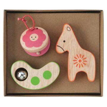ロバのシェーカーと原っぱの鈴、そしてかわいいお花のカスタネットの3点セットです...